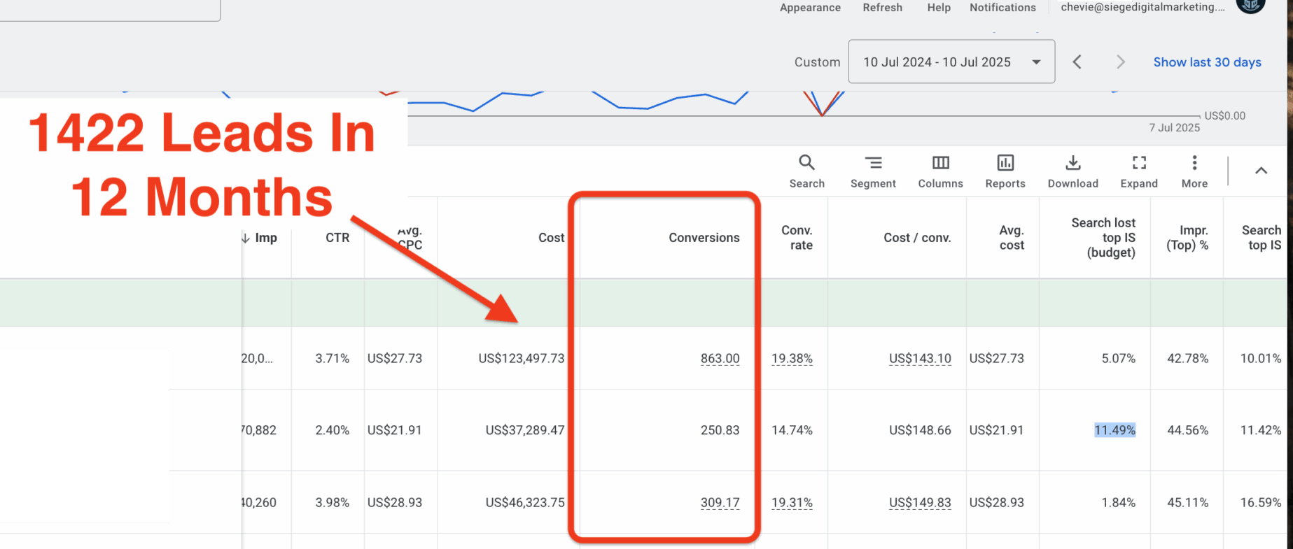 We have worked with this HVAC client for over 3 years. In just 12 months, we helped this client generate over 1422 leads. Maintaining a healthy cost per lead in a very comepititve market.